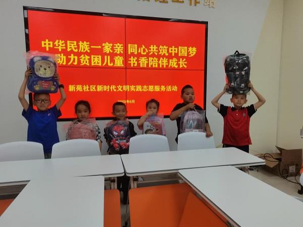 乘着国际儿童节的东风,新苑社区依托新时代文明实践站,组织开展“中华民族一家亲、童心共筑中国梦”——助力贫困儿童、书香陪伴成长捐赠活动,辖区贫困儿童家庭受邀参加活动。