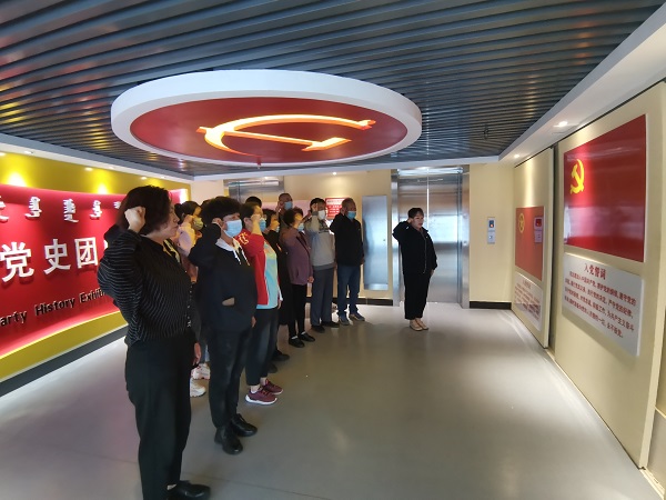 一行人首先参观了海南区党史团史展厅,讲解员主要从革命篇、建设篇、改革篇、发展篇4个篇章带领大家回顾我们党从站起来到富起来再到强起来的奋斗历程,展厅里的张张照片和实物资料深深地吸引了大家的目光。随后,按照主题党日程序,全体党员重温入党誓词、共同学习了党章(节选)。最后,由社区党委副书记带领大家学习了《中国共产党简史》节选内容。