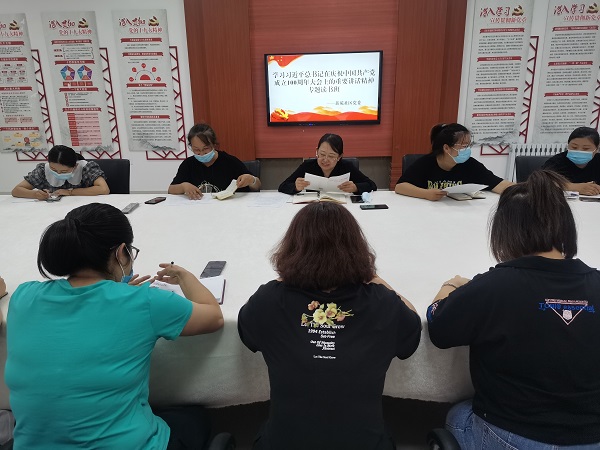 为落实拉僧仲街道关于举办党史学习教育专题读书班的部署要求,深入学习贯彻习近平总书记在庆祝中国共产党成立100周年大会上的重要讲话精神,切实把思想和行动统一到党中央的决策部署上,8月20日,新苑社区党委组织社区党员、网格员开展学习贯彻习近平总书记在庆祝中国共产党成立100周年大会上的重要讲话精神专题读书班。