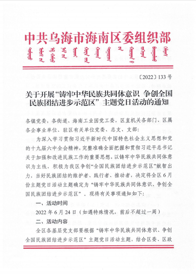 关于开展“铸牢中华民族共同体意识 争创全国民族团结进步示范区”