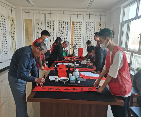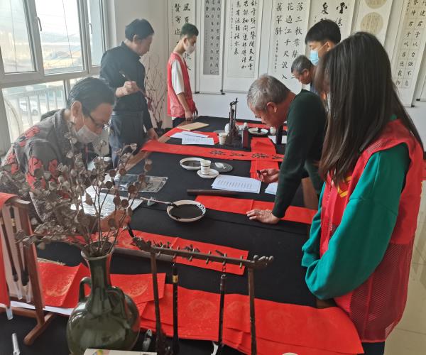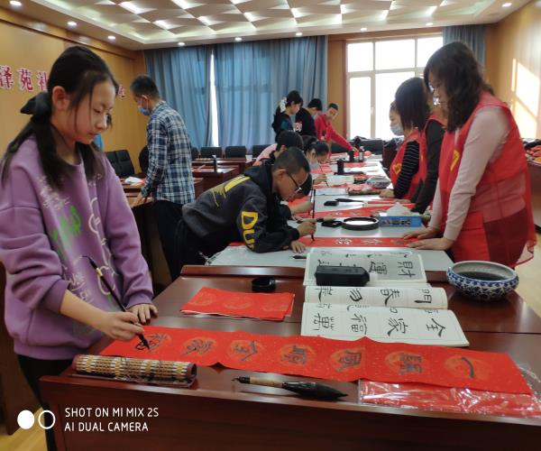 活动中不仅有党员、居民志愿者参加,还不乏有青少年的身影。社区书法老师手把手地教小小志愿者们写春联、写福字,讲述春节写“春联”贴“春联”的风俗习惯等,传承我国优秀传统文化,使青少年从小树立文化自信。