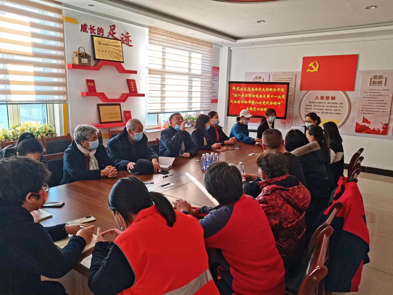 为进一步贯彻落实《内蒙古自治区党委关于认真学习宣传贯彻自治区第十一次党代会精神的决定》和《乌海市委关于认真学习宣传贯彻市第八次党代会精神的通知》要求,把广大党员群众的思想统一到大会精神上来,把力量凝聚到大会确定的各项目标任务上来。按照上级党组织安排部署,1月17日下午,泽苑社区党委各党支部在社区二楼党员服务驿站联合开展“深入学习贯彻自治区第十一次党代会精神和市第八次党代会精神”主题党日活动。
