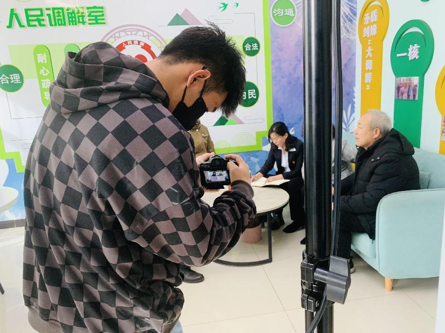 泽苑社区党组织书记“晒党建、晒成绩”视频脚本经过七次修改后,于2月18日上午正式进入样片拍摄阶段。