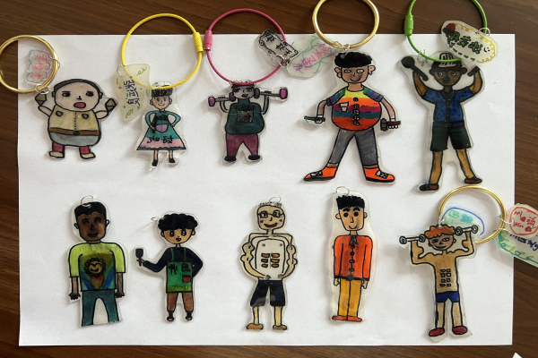 活动中,志愿者老师通过描绘自己父亲的形象来将孩子们带入活动,当志愿者老师问道孩子们:“谁能说说你们的爸爸在你们的心目中是什么样子”,孩子们积极踊跃的回答着,有的说“我的爸爸做饭特别好吃”;有的说:“我的爸爸是健身达人,有八块腹肌”等等。在有趣生动的互动后,孩子们就通过自己手中的画笔将爸爸的形象画在了热缩片上,之后通过上色、修剪、打孔,一个个活灵活现,形态各异的爸爸形象跃然纸上。