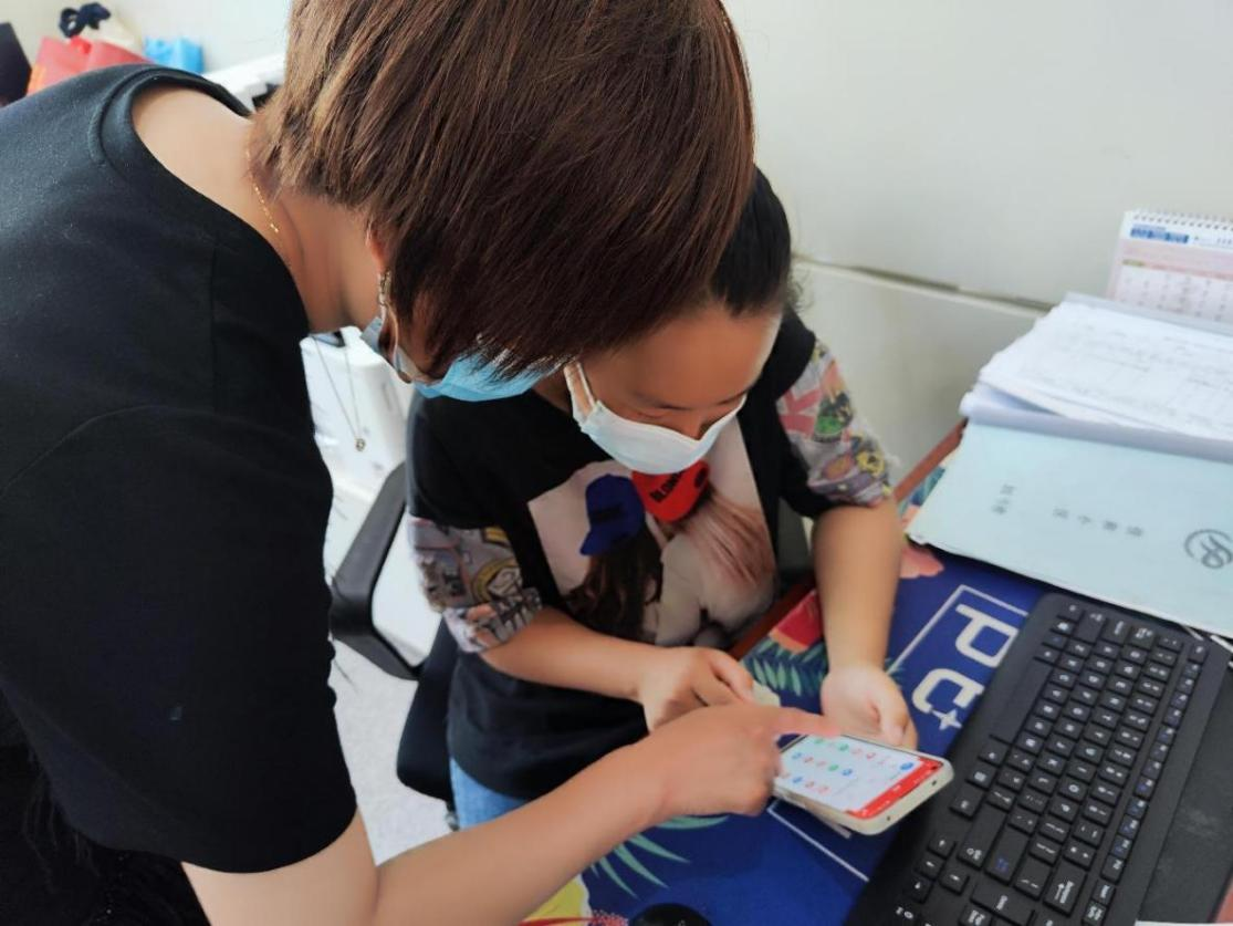 佳和支部书记陈丽敏指导刚入职网格员使用“学习强国”学习平台