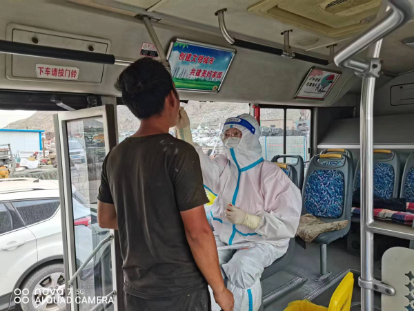 “居民朋友们,都出来做核酸啦!”网格员葛福来拿着大喇叭一遍遍播放着提前录好的吆喝走街串巷通知居民。有着天然优势的采样车是由疫情期间停运的海南城市公交变身而来的,居民只需通过车下排队测温和出示健康码、前门上车扫码登记、后门采样下车的顺序即可完成采样。“以前我还得骑车到海南城区做核酸,现在一出门就能做,真的太方便了。”刚刚完成采样的王大娘笑着说,“车子开到家门口真的方便了我们,实在太感谢你们了!”