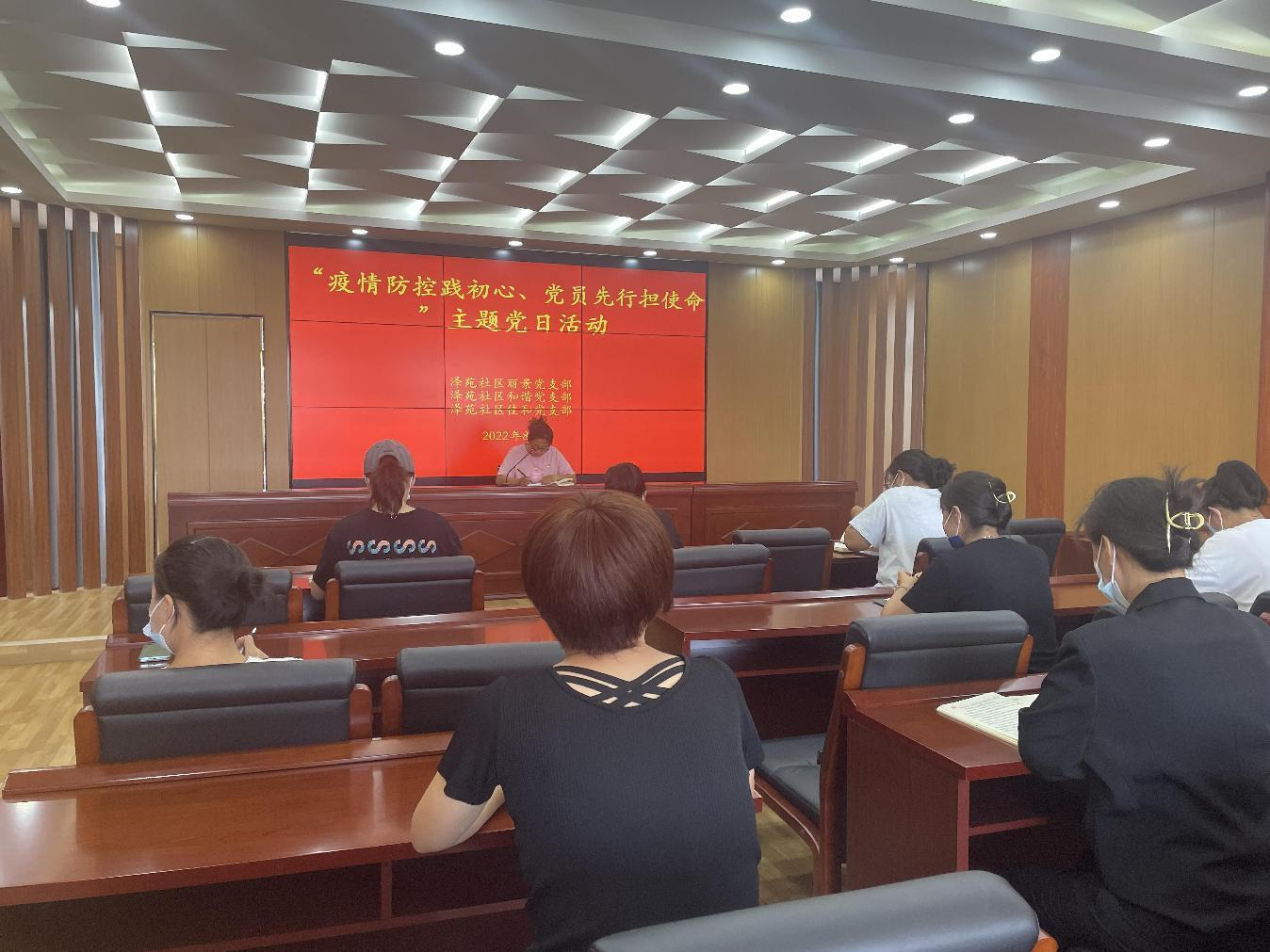 为进一步激励社区党员在疫情防控工作中担当作为,坚决打赢疫情防控阻击战,在新时代新征程上留下无悔的奋斗足迹。按照海南区委组织部关于主题党日活动相关要求,8月25日下午,泽苑社区党委各党支部在社区三楼会议室联合开展“疫情防控践初心、党员先行担使命”主题党日活动。