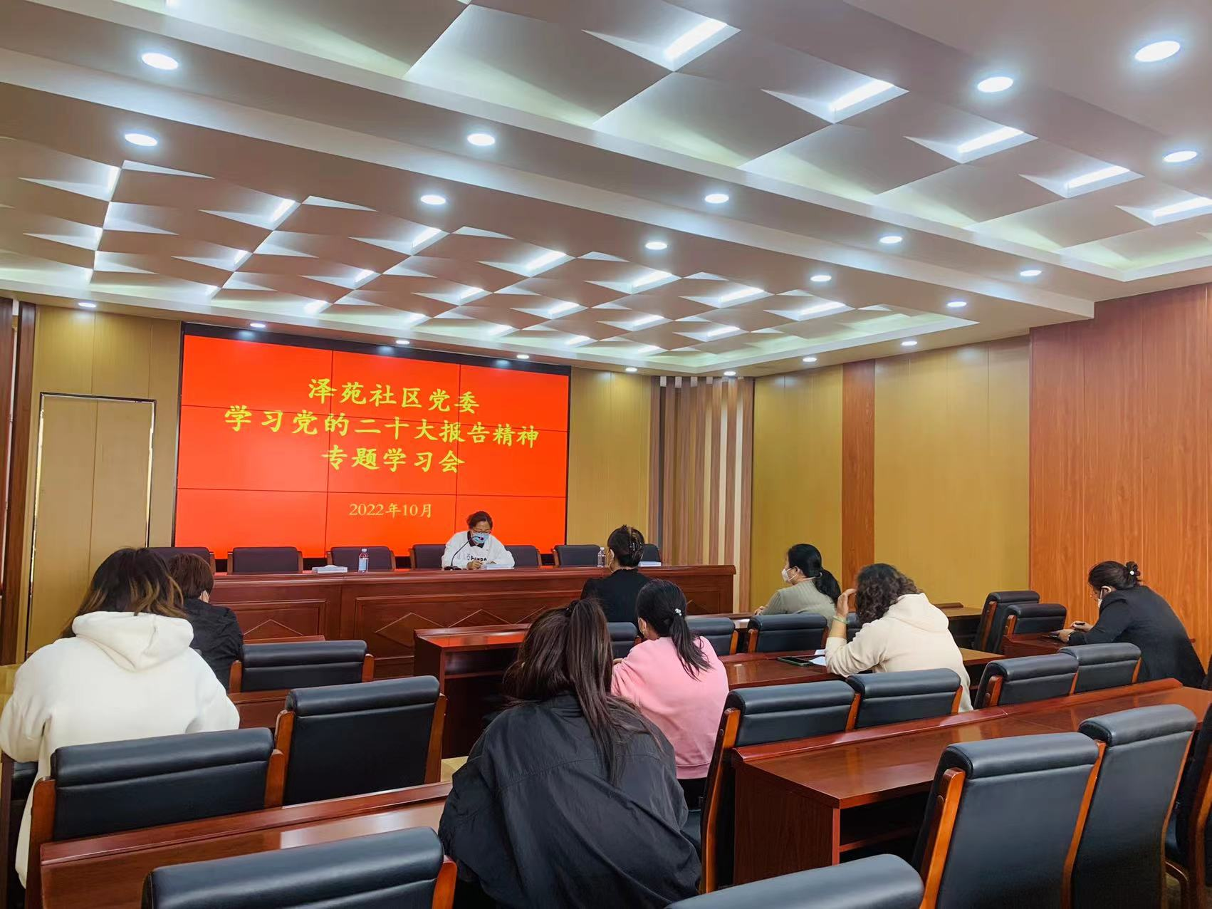 10月25日下午,泽苑社区党委召开学习党的二十大报告精神专题学习会,传达学习党的二十大报告精神,社区“两委”、网格员参加会议。