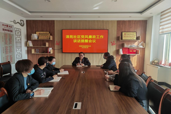 为进一步加强社区党风廉政建设,3月1日下午,泽苑社区召开党风廉政工作谈话提醒会议。