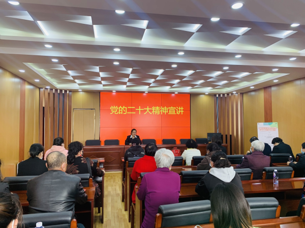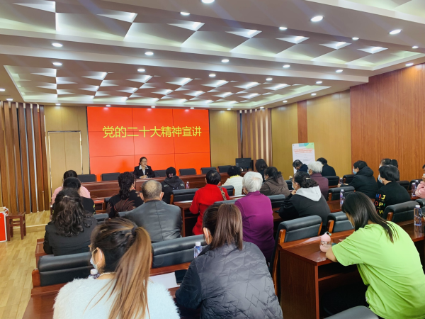 为深入学习贯彻党的二十大精神,引导社区全体工作人员把思想和行动统一到党的二十大精神上来,把智慧和力量凝聚到实现大会确定的目标任务上来。3月20日上午,泽苑社区党委开展学习贯彻党的二十大精神集中宣讲活动,此次活动由社区党委书记袁玲做主题宣讲,社区全体工作人员、部分群众参加。