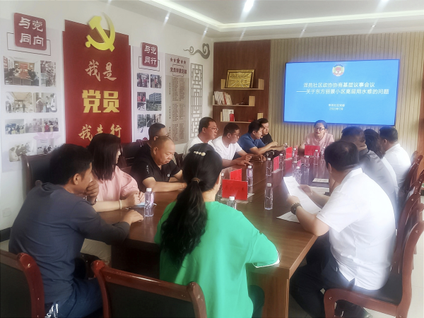 会上,泽苑社区党委书记、居委会主任、社区政协协商基层工作室主任袁玲就东方丽景小区居民用水现状及前期调研的基本情况向大家做简要说明,与会人员紧紧围绕议题展开讨论,大家集思广益、畅所欲言,提出了具有针对性和操作性的意见建议。经过一番讨论交流,将所提出的问题及建议进行整合,最终决定由颐景园物业公司负责联系第三方对加压泵等供水设施进行问题排查并做出预算,再严格按照法定程序启用公共维修基金,由区自来水公司提供技术指导以及后期运行管理。