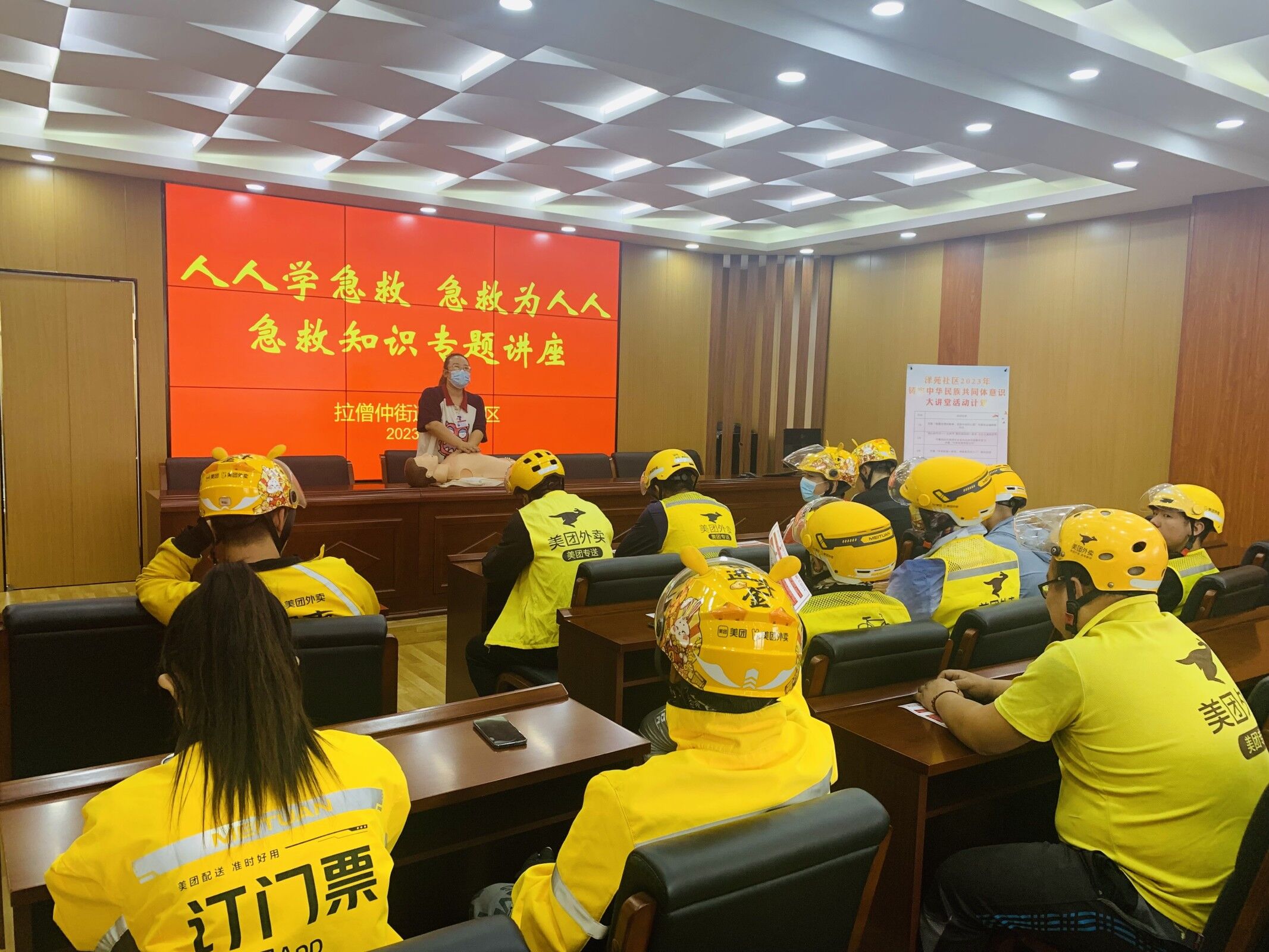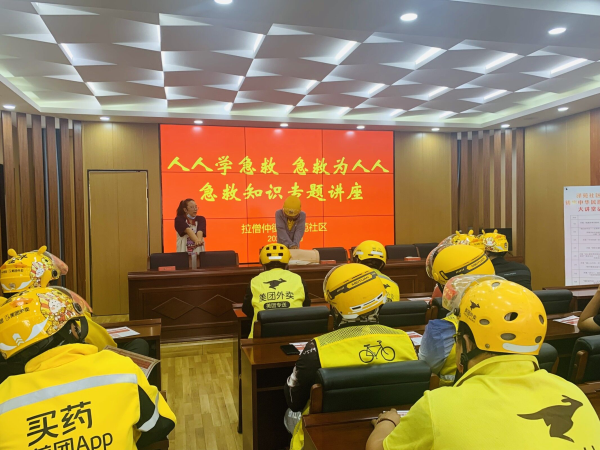 义诊结束后,在社区党群服务中心开展了急救知识培训。红十字救护员高娟采取理论讲授与实际操作相结合的方式,在科普急救基础知识的同时针对心肺复苏的知识与技能进行现场演示,指导大家如何把握“黄金时间”进行现场急救。此次培训,旨在让外卖小哥了解掌握专业急救知识和救护技能,让他们在日常工作中不仅具备自救能力,也能在紧急情况下救人。