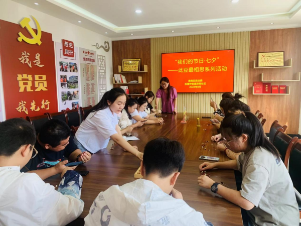 “劝君多采撷,此物最相思”。七夕节最普遍的习俗,就是女孩子在节日进行的各种乞巧活动。姑娘们穿针引线验巧,做些小物品赛巧,祈求心智手巧。8月22日,在七夕节来临之际,泽苑社区新时代文明实践站开展“我们的节日·七夕”——此豆最相思系列活动。