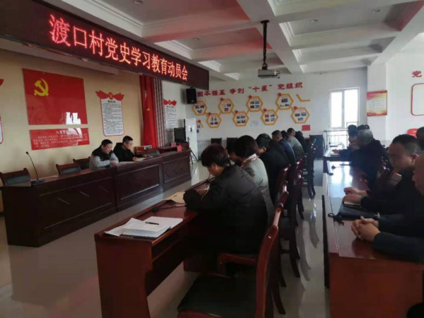 3月22日上午,渡口村开展党史学习教育动员会。渡口村党委书记、村委会主任王锁平、党委副书记朱鹏建主持并做了宣讲报告。