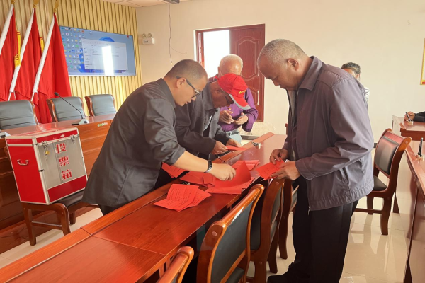 四新村党总支党员大会在庄严肃穆的国歌声中拉开帷幕。依据《中国共产党章程》《中国共产党基层组织选举工作暂行条例》等相关规定,刘明义宣读了《中共海南区巴音陶亥镇四新村总支部委员会党员大会选举办法(草案)》。大会首先选定了监票人、计票人和唱票人。与会党员按照会议程序依次进行无记名投票,以差额选举方式补选出1名中共海南区巴音陶亥镇四新村总支部委员会委员。