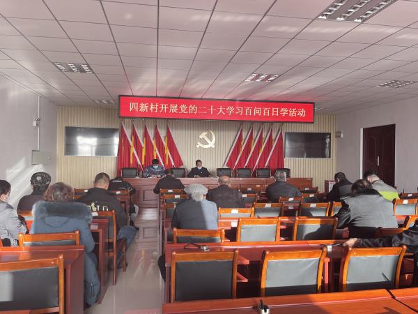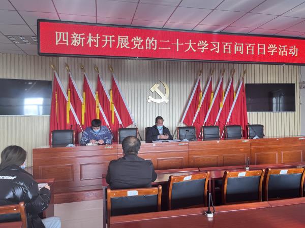 为推动党的二十大精神入脑入心、走深走实,进一步强化学习,树立干事创业、担当作为的新风,让党的二十大精神在四新村落地生根,四新村党总支从12月13日开始开展为期百天的学习《党的二十大报告学习辅导百问》专项活动。