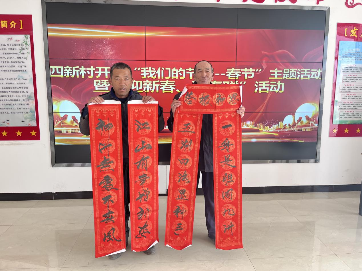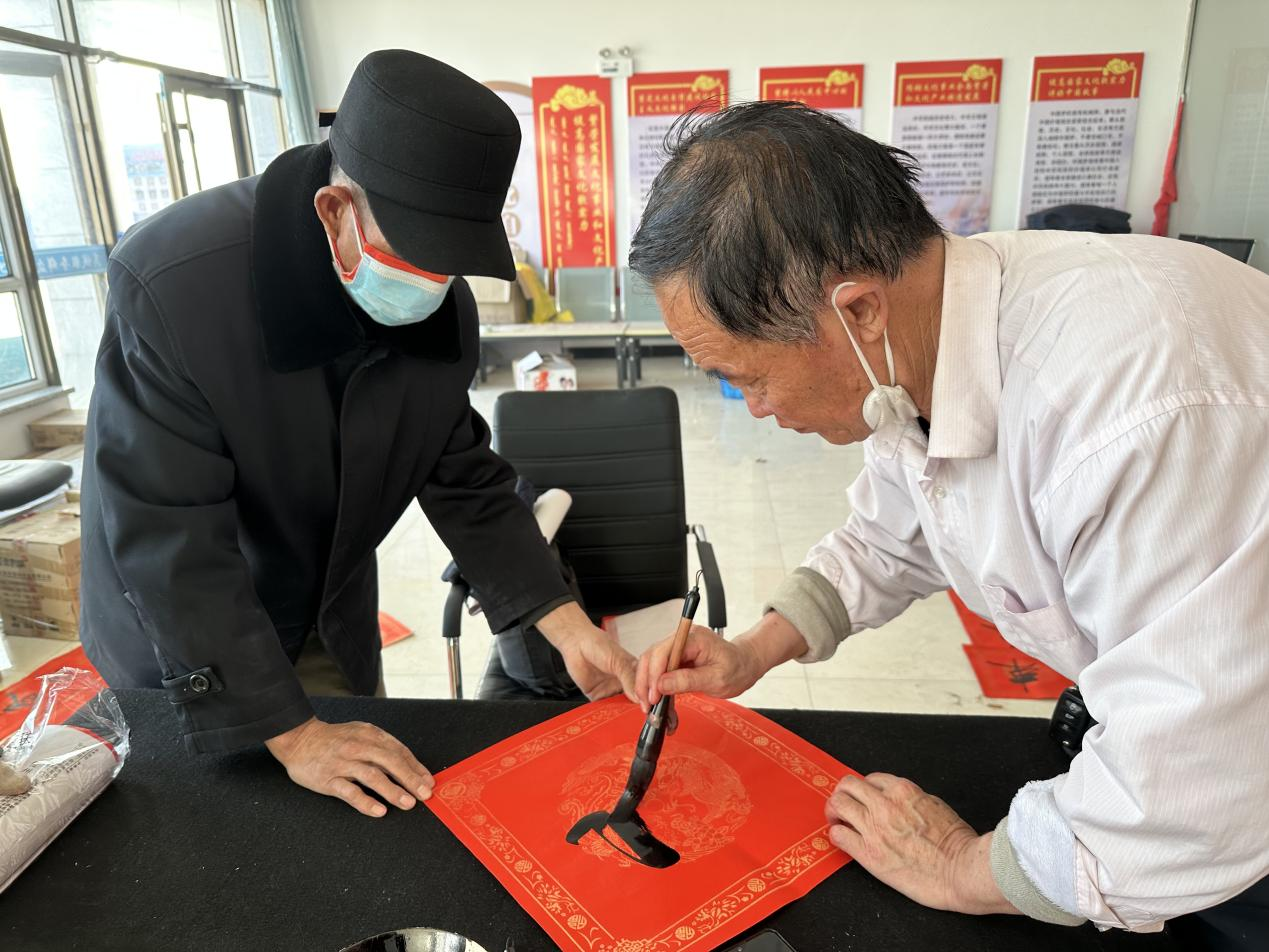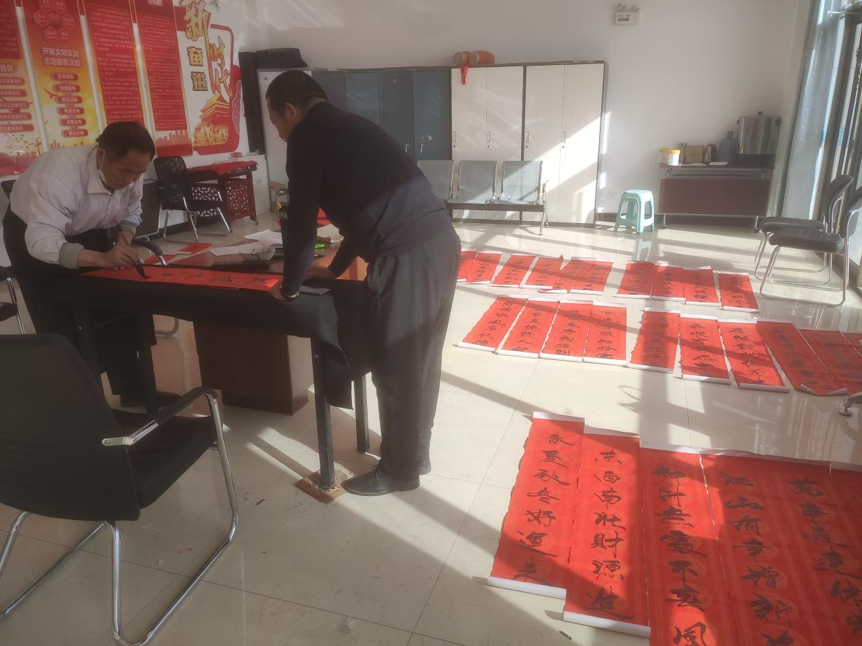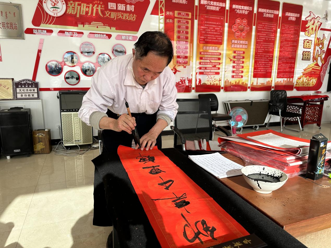 此次活动中,四新村党总支书记刘明义为村民书写春联,他在活动现场为村民朋友挥毫泼墨,用一幅幅满载祝福的春联,把浓浓的年味儿和新春的祝福送给村民,村民们拿到写满祝福和美好憧憬的春联时,喜悦之情溢于言表。