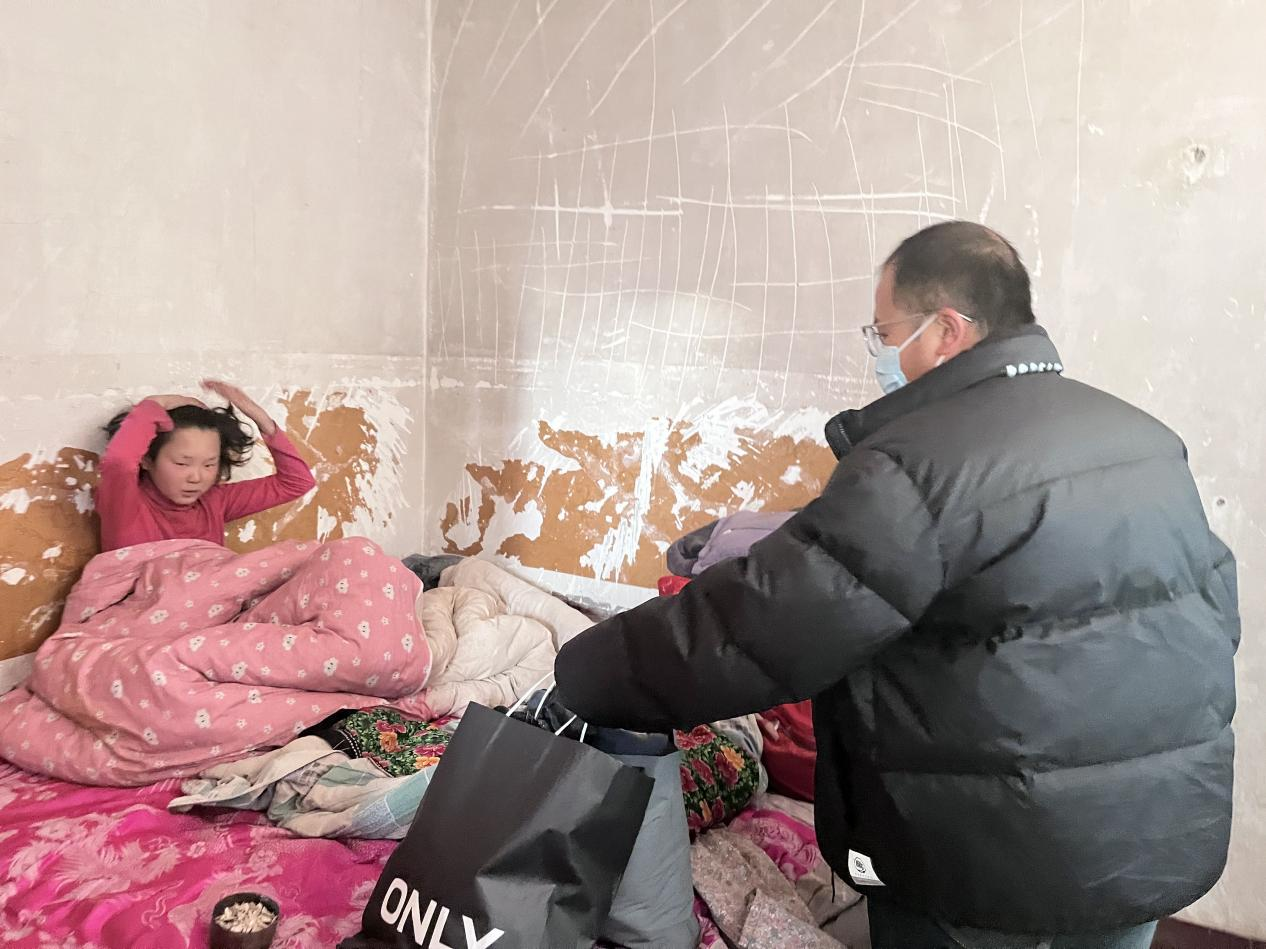 2022年12月28日入户对侯娜进行了慰问,侯娜父亲患有精神病,其母亲于2021年去世,慰问时志愿者为其送筹集来的衣服及慰问金,再入户时发现其父亲精神病再次发作,对其有“软禁”的倾向,工作人员了解情况后,及时组织村“两委”、小组长、小社长进行讨论,会上直接同其亲戚电话沟通,协调解决侯娜的抚养问题,经过两周的协调,侯娜的姑姑来将侯娜接走并进行抚养。