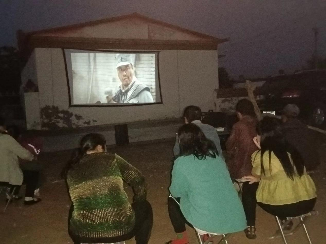 一台放映机、一块幕布、一个放映员,把经典国防革命电影送到群众身边,将国防精神融进群众喜闻乐见的文化活动中。“现在生活条件好了,在电视上、手机上随时可以看电影,但我们仍然怀念小时候跑十几公里坐在一起看露天电影的感觉!”大家感慨道。“白天听说广场要放电影,吃过晚饭我就带着孩子过来了,这种场景就像回到了小时候,同时也带孩子来感受一下我们小时候的生活,希望以后这样的活动越来越多”,一位村民高兴地说。伴随着放映机转动,喧闹的广场逐渐安静下来,放映机的光如同闪电一般,瞬间点亮了夜晚的广场,大家找了个舒适安逸的位置坐下观看电影,随着剧情发展发出阵阵掌声,还不时与身边朋友互动,现场好不热闹。宽大的银幕、清晰的画面,让大家全身心享受着露天数字电影带来的乐趣和美妙。