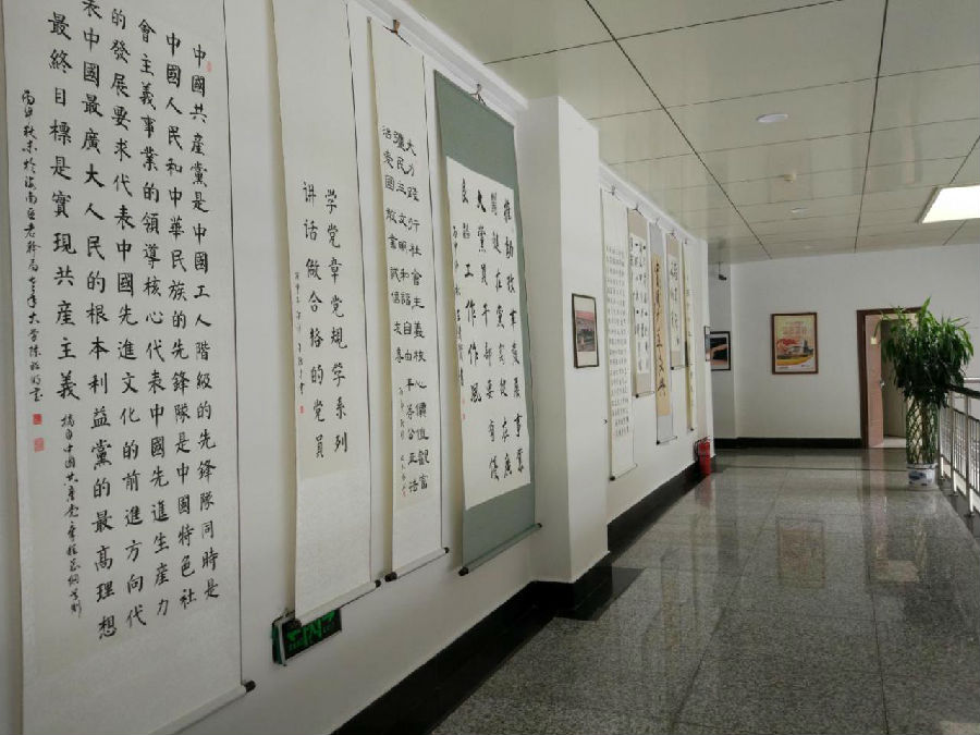 本次书法作品展共展出60余幅软笔书法作品,既有习近平总书记系列重要讲话中的精彩语录、古典名句,又有以“两学一做—学党规、修党性”为主题的创意书法,内容丰富、喻意鲜明,共同阐明了学习教育的主旨,抒发了对党忠诚、勇于担当的思想情怀。