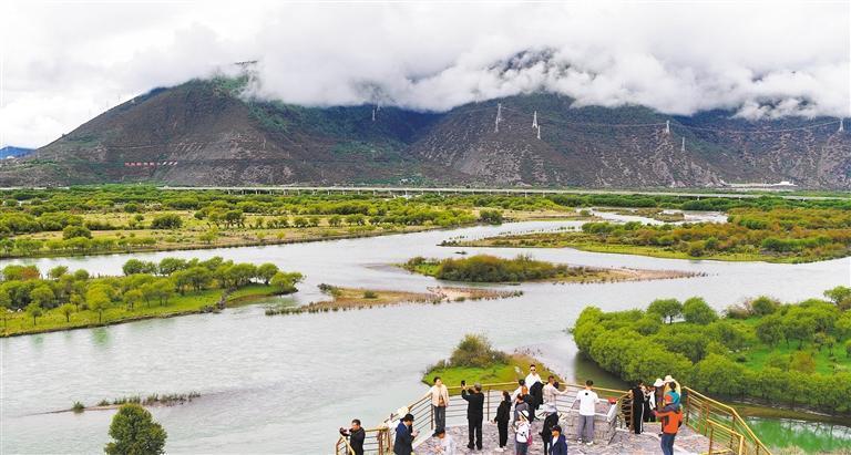 雅尼国家湿地公园位于西藏林芝市雅鲁藏布江与尼洋河交汇处,湿地公园水面海拔2920米。旖旎的风光吸引了大批游客前来观光。 经济日报记者 高兴贵摄