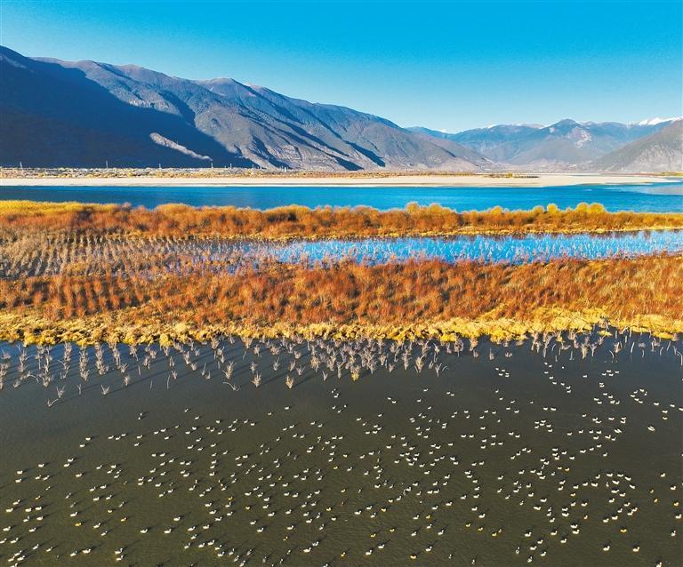 雅尼国家湿地公园水天一色、候鸟成群。近年来,林芝市实施雅尼国家湿地保护与修复工程,生态环境持续向好。 董志雄摄(中经视觉)