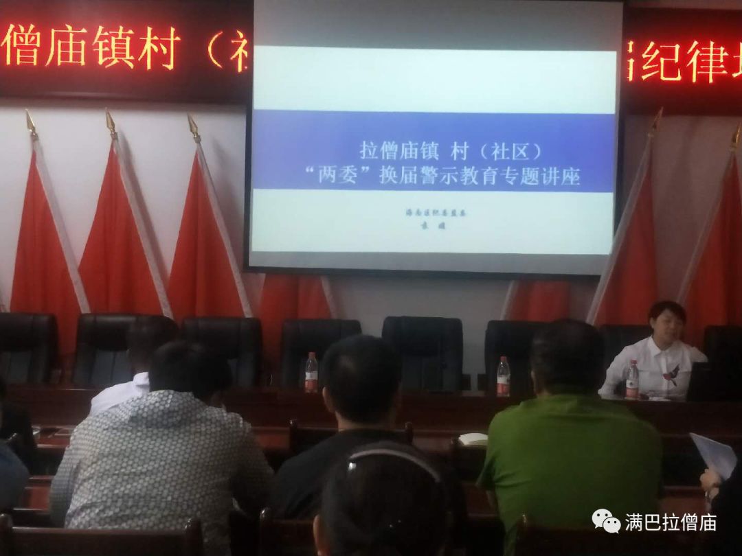 为严明换届纪律,进一步提高村(社区)“两委”换届选举工作人员对法规、政策、纪律的熟悉程度,确保2018年村(社区)“两委”换届选举风清气正。5月23日上午,拉僧庙镇召开村(社区)“两委”换届纪律培训暨警示教育会,邀请区纪委常委王俊同志,区纪委宣传部长吴颖华同志、区纪委宣传部袁媛同志授课,镇政府全体干部职工、村(社区)“两委”成员、党支部书记、村民小组组长参加会议。