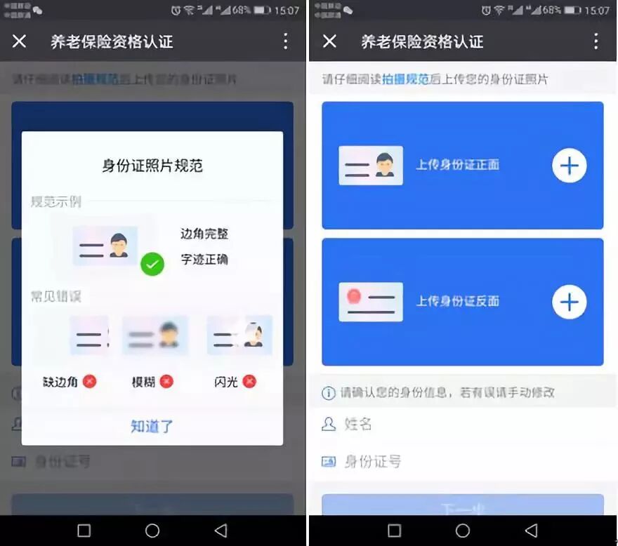初次使用微信认证的请按照系统提示拍照和上传身份证照片。