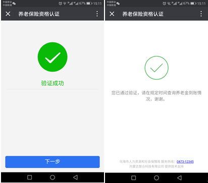 等待系统提示“验证成功”以后就可以完成养老金资格认证。