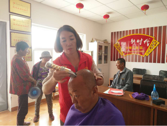拉僧庙镇曙光村新时代文明实践站开展义务理发志愿服务活动