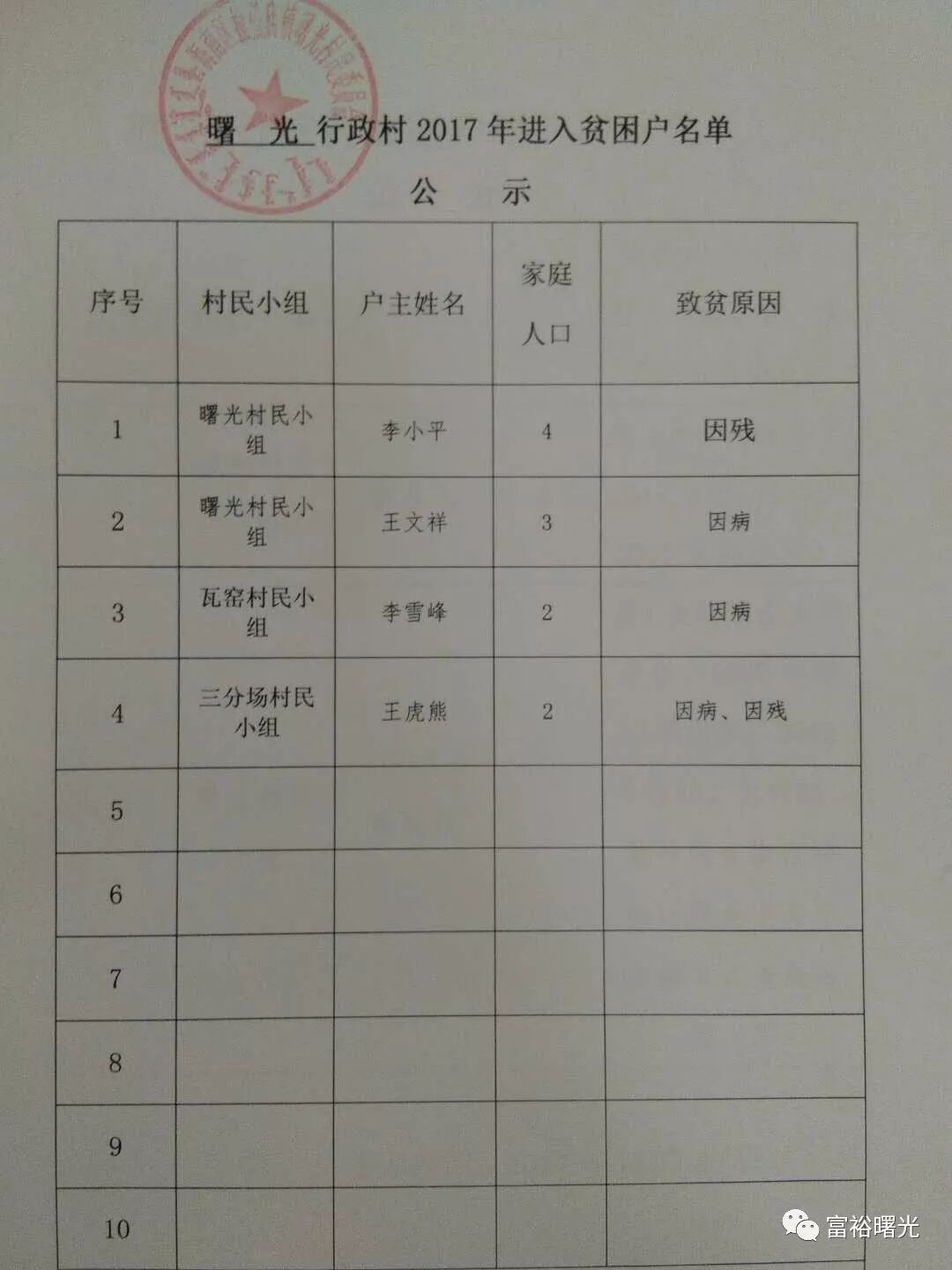 拉僧庙镇曙光村建档立卡户日常救助花名公示