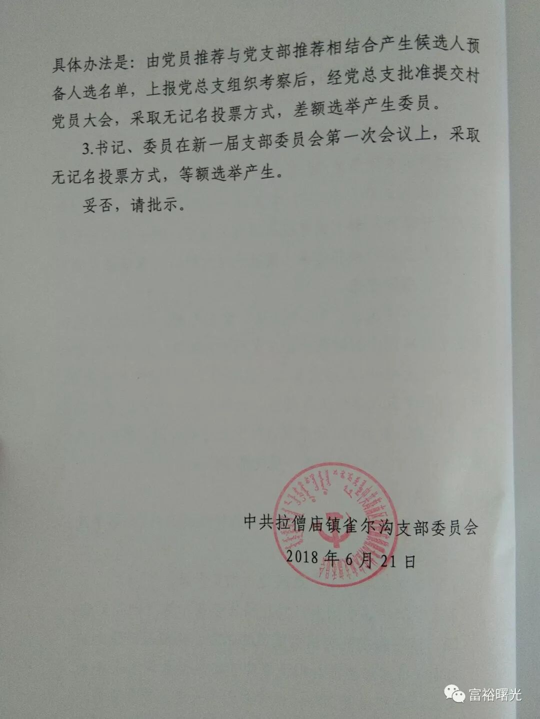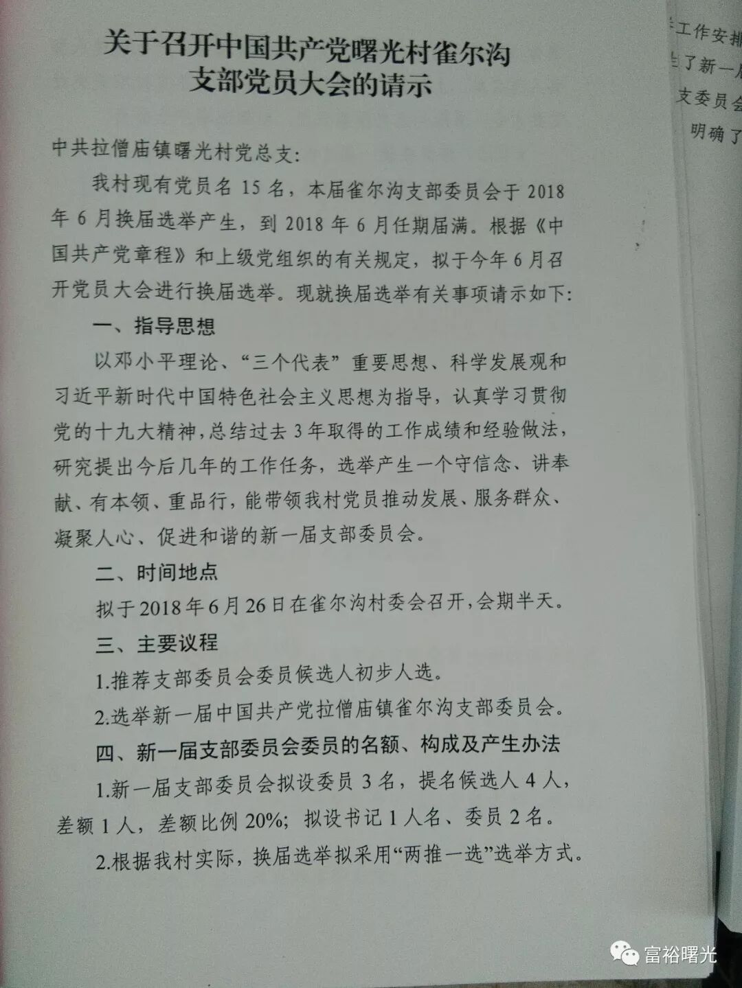 关于召开中国共产党曙光村雀尔沟支部党员大会的请示