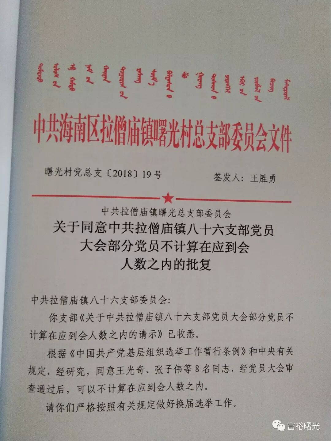 关于同意中共拉僧庙镇八十六处支部党员大会部分党员不计算在应到会人数之内的批复