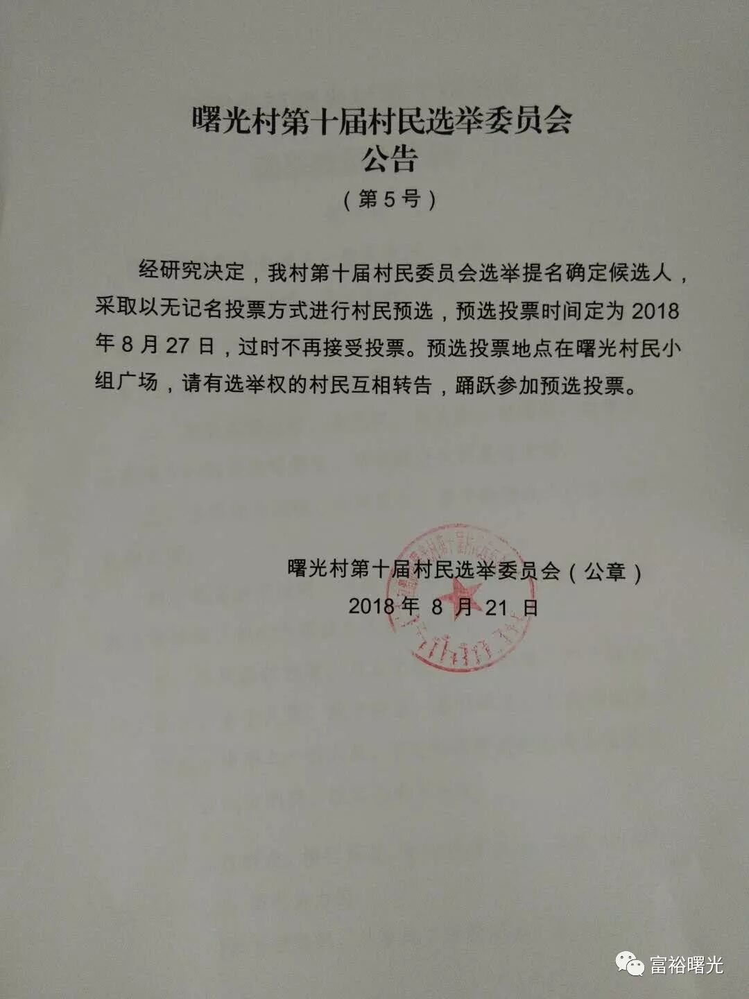 拉僧庙镇曙光村第十届村选举委员会选举公告 第4号
