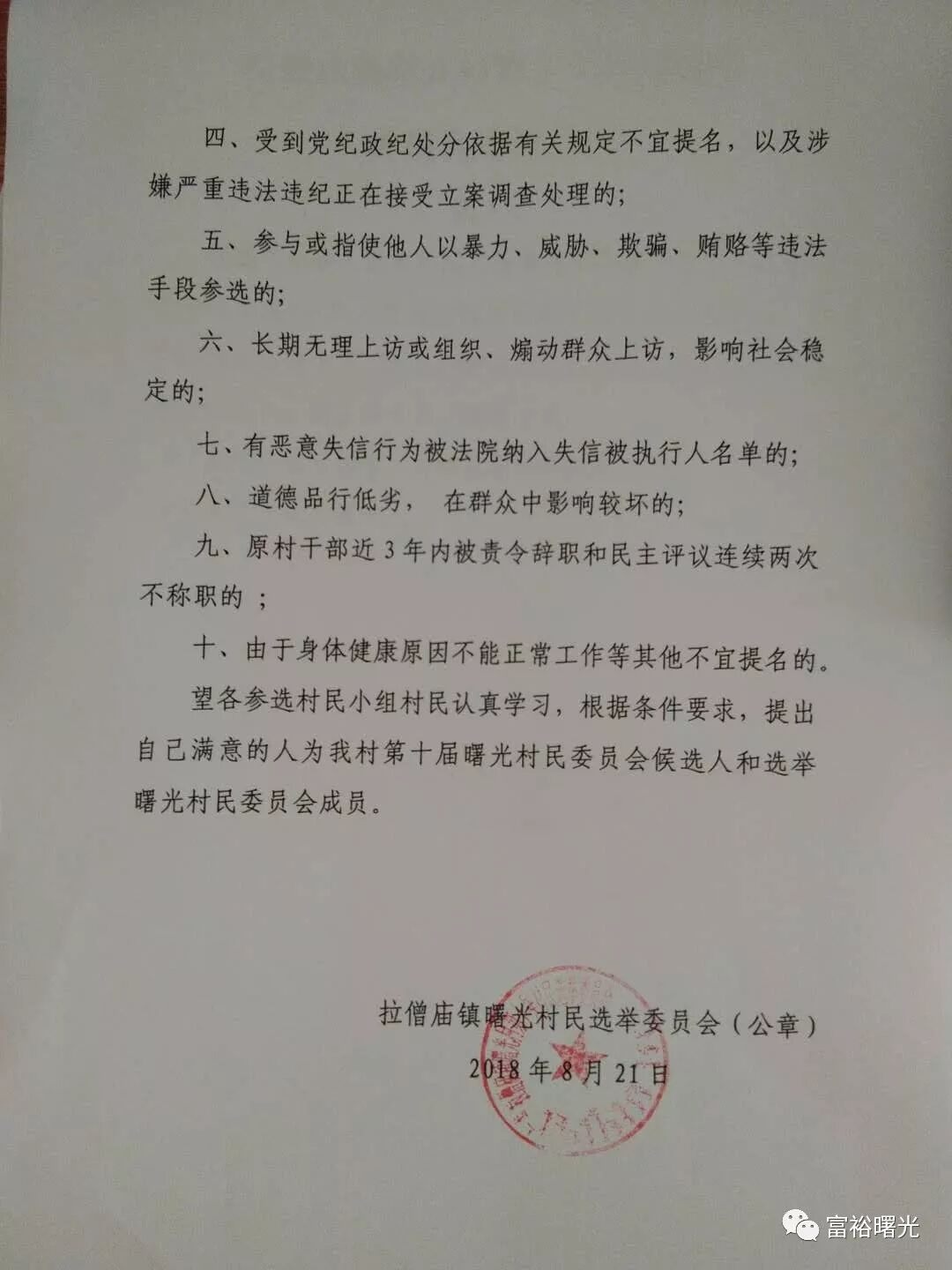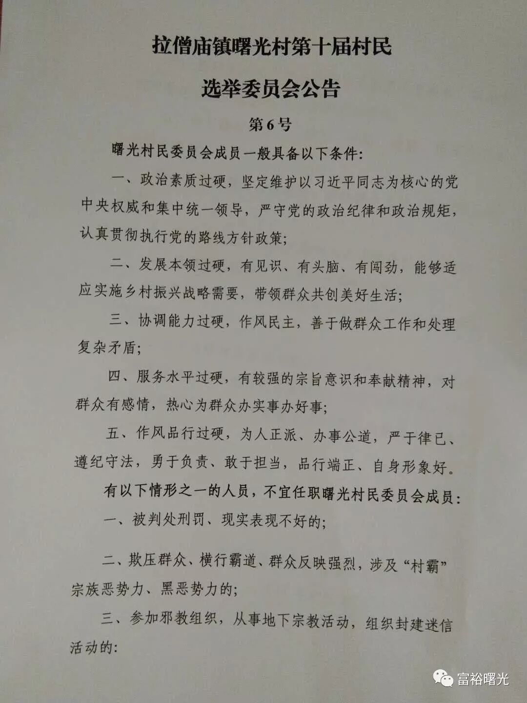 拉僧庙镇曙光村第十届村民选举委员会公告 第6号