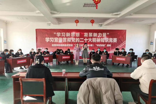 为深入学习贯彻党的二十大精神,在辖区内掀起党的二十大精神学习热潮,积极营造“以赛促学、以学促行、比学赶超”的学习氛围。12月8日,拉僧仲街道组织开展“学习新思想,凝聚新力量”学习宣传贯彻党的二十大精神知识竞赛暨抓基层党建“三强三优”(第5期)“书记讲坛”活动。