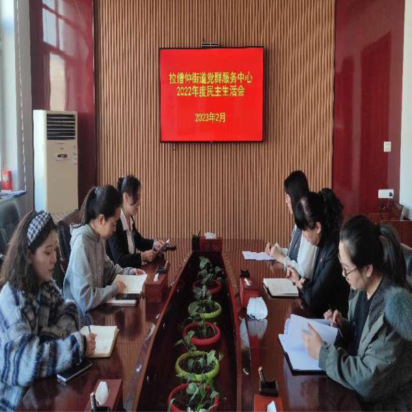 近日,拉僧仲街道党群服务中心召开2022年度民主生活会,街道党工委委员、组织委员钱雅琼到会指导并作点评。
