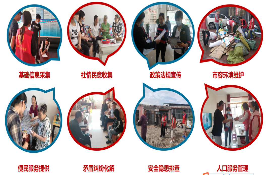 明确网格员基础信息采集、社情民意收集、政策法规宣传、市容环境维护、便民服务提供、矛盾纠纷化解、安全隐患排查、人口服务管理八大职能职责,按照要求规范开展网格工作。以网格为单位,建立居民微信群53个,充分利用网格员人熟、地熟、情况熟的优势,整合延伸网格服务职能,向辖区居民提供主动上门、及时高效、全程跟踪三项“特色服务”,做到“来有问题、去有目的、后有反馈”。