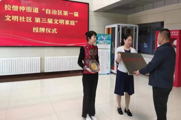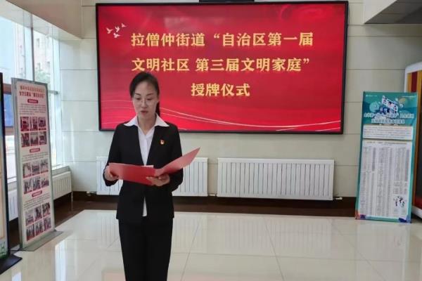 为深入学习贯彻党的二十大精神和习近平总书记关于精神文明建设的重要论述,充分展示街道精神文明建设丰硕成果,激发广大干部群众参与精神文明建设的积极性、主动性、创造性。5月12日,拉僧仲街道举行了“自治区第一届文明社区、第三届文明家庭”授牌仪式。