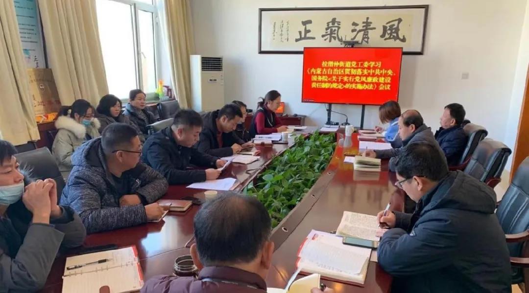 为进一步强化街道和社区开展党风廉政建设责任意识,11月27日,拉僧仲街道理论学习中心组组织开展了《关于实行党风廉政建设责任制的规定》、内蒙古自治区贯彻落实中共中央、国务院《关于实行党风廉政建设责任制的规定》的实施办法的学习。街道领导班子成员和环节干部,各社区党委书记参加了学习。