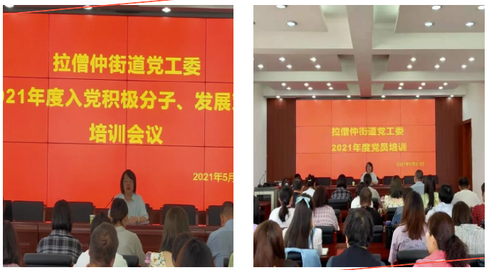 为认真贯彻落实《中国共产党发展党员工作细则》,切实加强入党申请人入党前和入党后的培养教育,从源头上提高街道党员队伍建设质量,努力构建一支素质较高、结构合理的入党积极分子和发展对象队伍,严把发展党员“入口关”,确保发展党员的质量,5月21日拉僧仲街道党工委举办了2021年度入党积极分子、发展对象培训,来自各街道、各社区的入党积极分子、发展对象共计35人参加了此次培训,培训由街道党工委副书记白丽娜同志主持。