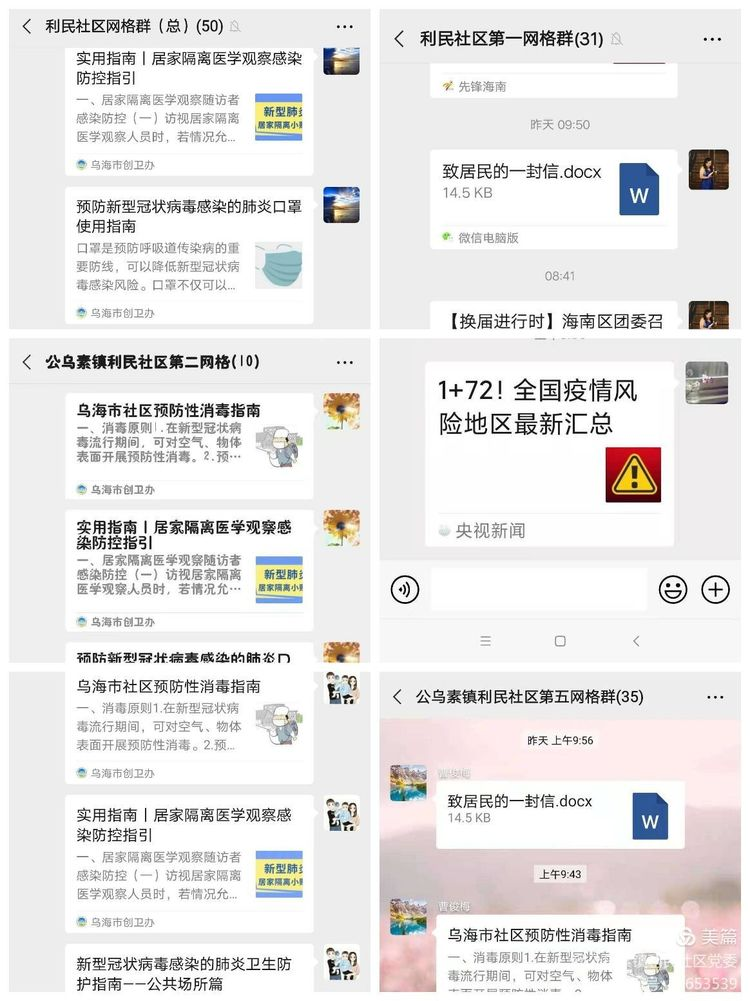 目前,新冠肺炎疫情防控形势异常严峻,适逢春节临近,人口流动性加大,公乌素镇利民社区第一时间成立了疫情防控工作小组,同时,制定新冠疫情防控工作方案,严格落实“五有三加强”,明确“七员”职责。利用网格微信群、发放宣传资料、电子屏滚动播放标语等多渠道、多形式宣传新冠疫情防控科普知识,积极传递疫情防控正能量。同时,网格员志愿者入户走访,摸排每户居民家庭成员中有无于中高风险城市返乡或居住的情况,切实做到了底数清、情况明。