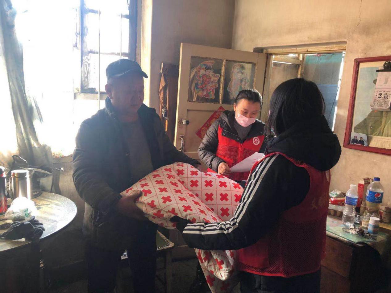 志愿者们将一床床厚实的棉被送到居民手中,与居民亲切交流,倾听他们的心声,详细了解他们的生活情况、身体状况、日常起居等,耐心的为居民讲解疫情防控的相关措施和要求,细心叮嘱他们做好疫情期间个人和家庭防护的同时加强防寒保暖、注意取暖安全。
