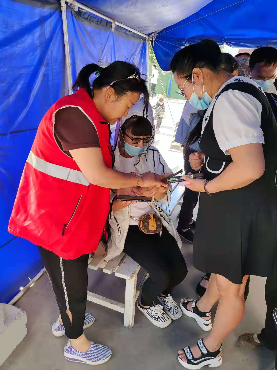 每天上午7:30、下午1:30,身穿红马甲的网格员们准时到场做好秩序维护、疫情防控知识宣传、人员分流引导等工作。为避免造成人员拥挤,她们4人一组,现场提示居民带好口罩、“一米线”等候、提前出示“健康码”、核对身份信息、协助登记、按序接种。并告知居民接种完后一定要在留观区观察30分钟,出现任何不良反应及时与医护人员联系。遇到没有智能手机,不会扫码预约的居民,网格员主动为他们提供帮助,大大减少了居民等候时间。当居民从留观区出来后,网格员还暖心地提醒居民接种完疫苗后,一定要注意休息、饮食要清淡,按时接种后续针剂。