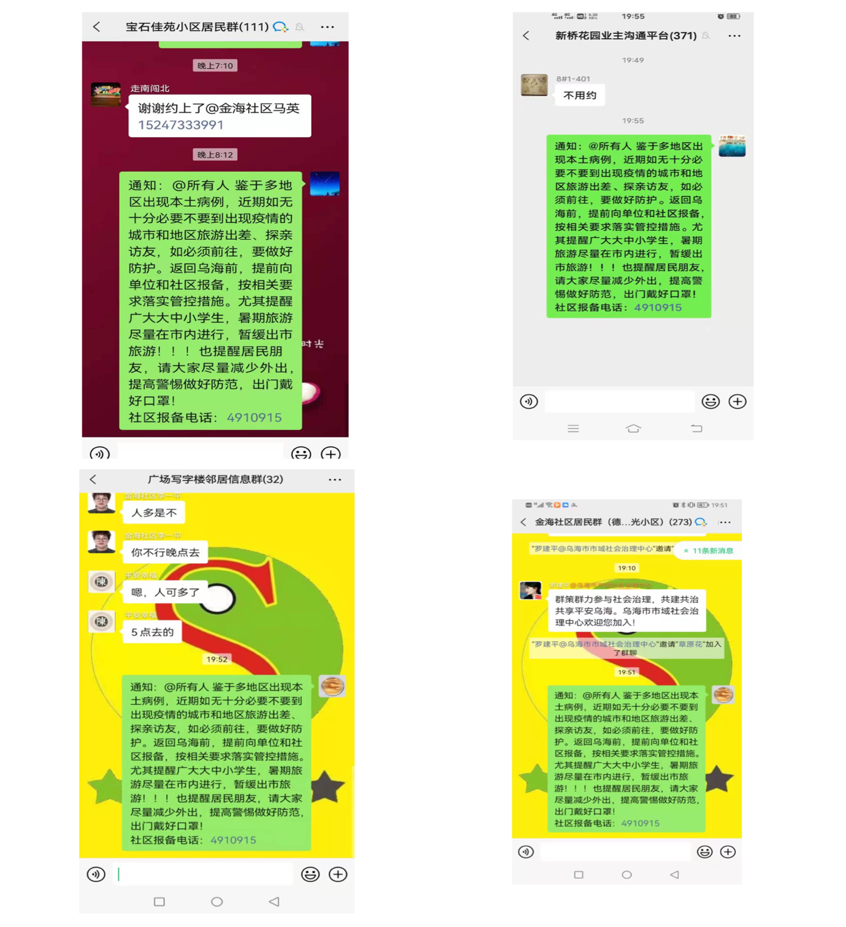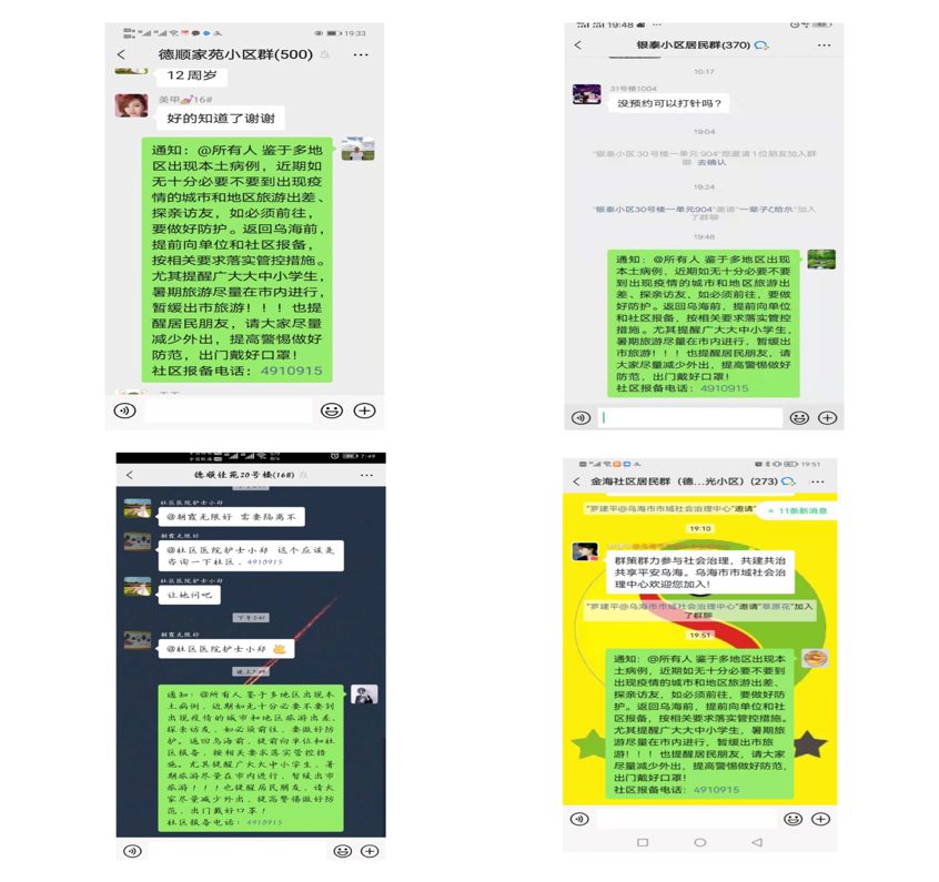 利用网格微信群对当前疫情防控最新要求进行宣传,解答居民提出的各种相关问题,了解群众的困难需求,提升居民加强自我防护的能力和配合防疫的自觉性。
