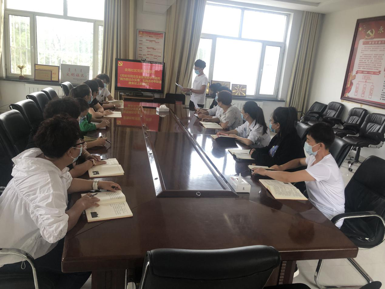 9月6日,金海社区开展学习《郑宏范同志在全区党史学习教育“我为群众办实事”实践活动专题调度会议上的讲话》。