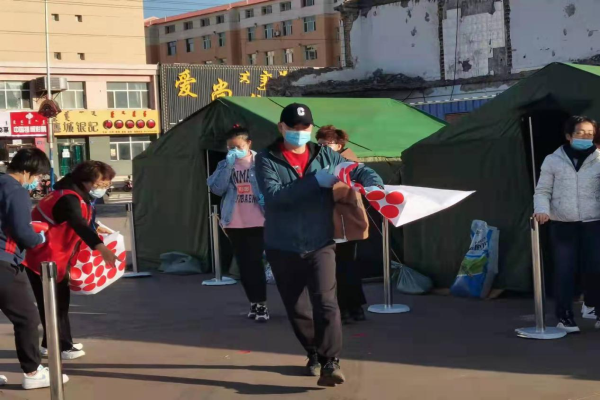 在咱们海南区开展所有学校全民核酸检测,他被分配到一完小,接管的是6号台引导的职位,防护服一穿,在核酸检测点一直站到最后,“按顺序站好,保持一米距离,十人一组”嗓子都喊哑了,腿都站酸了,还在坚持着,保证采样的工作有序进行。践行着控集疫情的使命,感染身边的每一个人。