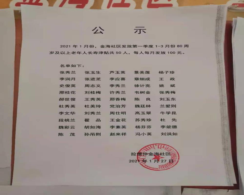 2021年1月老年人长寿津贴公式