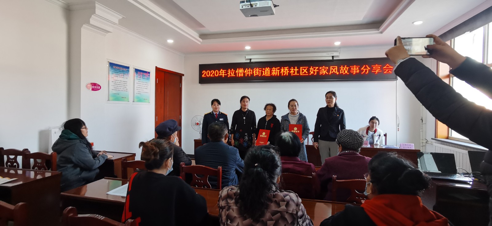 新桥社区的居民张翠娥、陈敏被评选为海南区委宣传部授予“好公婆”“好媳妇”荣誉称号;11月9日下午,新桥社区联合海南区委宣传部在三楼举办了道德讲堂--“道德模范、身边好人基层宣讲”暨颁奖仪式,应邀参加会议的有区委宣传部文明办张静、拉僧仲街道办事处王颖、社区党委党员、居民代表和全体工作人员参加了此次活动。