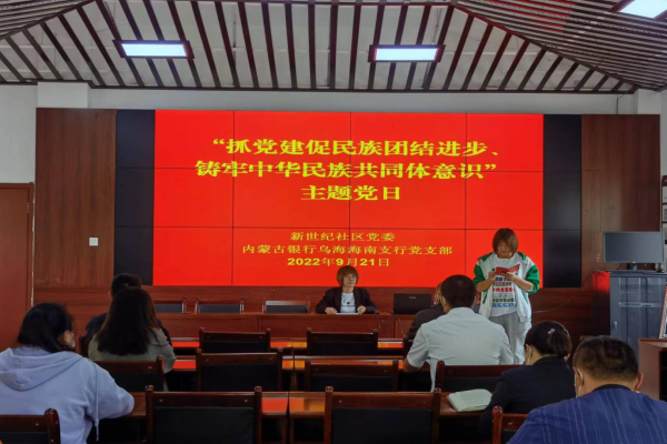 9月是全区民族团结进步活动月,同时也即将迎来党的二十大胜利召开。为全面贯彻落实中央民族工作会议、自治区第十一次党代会精神、市第八次党代会精神和区第九次党代会精神,推动我区“全国民族团结进步示范区”创建工作,按照安排部署,新世纪社区于9月20日开展“抓党建促民族团结进步、铸牢中华民族共同体意识”主题党日活动。